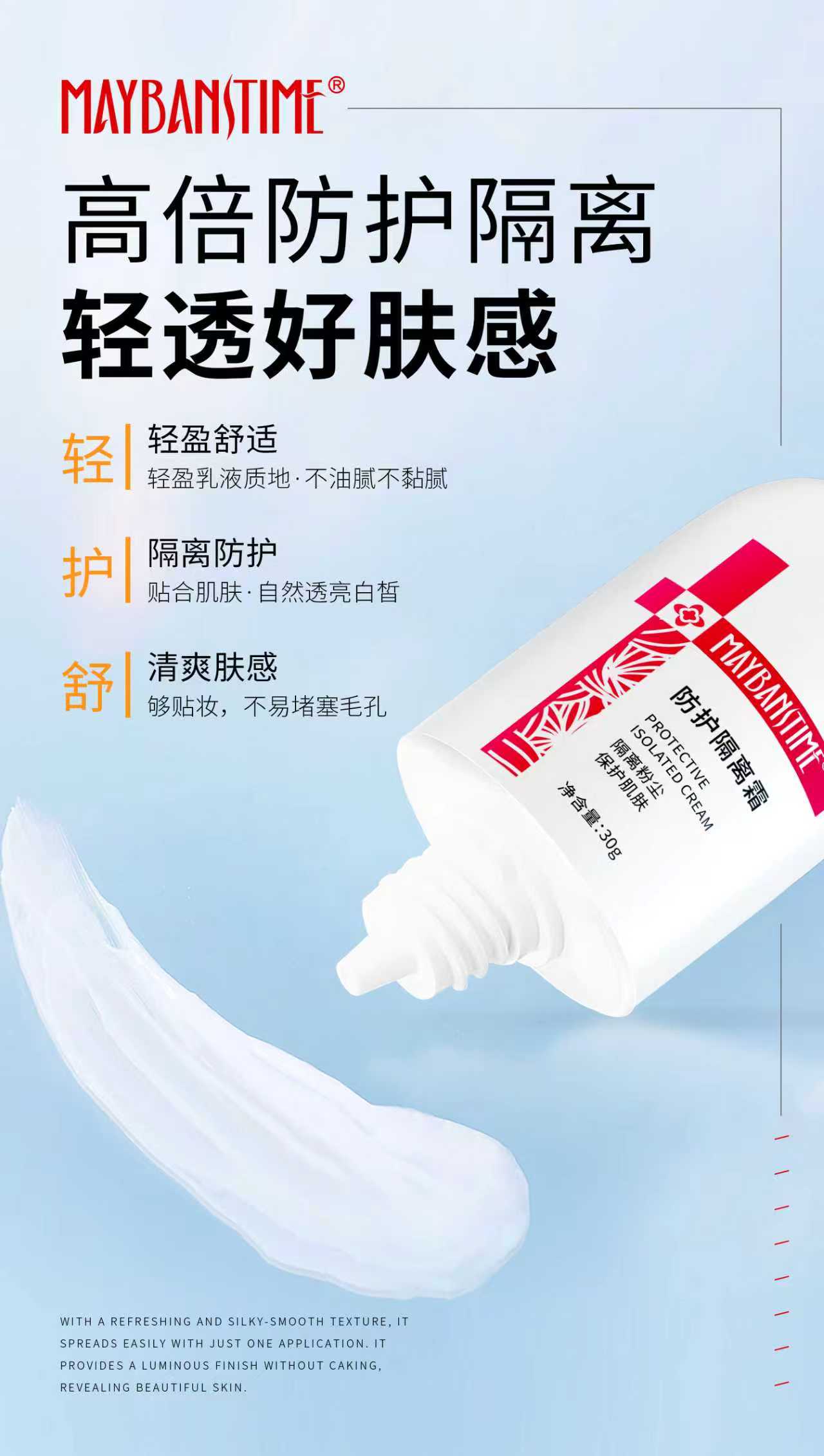 产品名称:防护隔离霜,30g【防晒隔离】